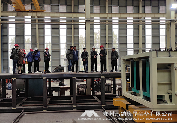 瑪納公司研制的“雙向空心復合外墻板”成組立模(子母模技術)生產(chǎn)線現(xiàn)場試驗線演示運行,各位領導共同觀看后給予了充分的肯定及認可。