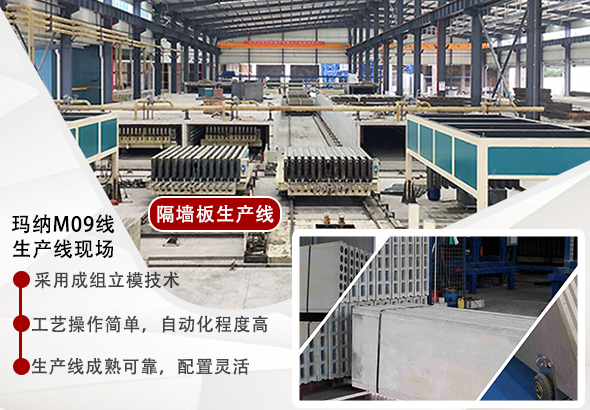 ①M09輕質墻板自動化生產線應用輕質隔墻板機器專業生產新型輕質隔墻板,具有成型精度高、周轉效率快、機械自動化程度高等優勢,質量可靠,投資回報率高,得到市場極大認可。