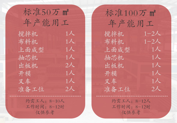 4.蒸壓陶粒隔墻板生產設備-M09線標準年產能用工