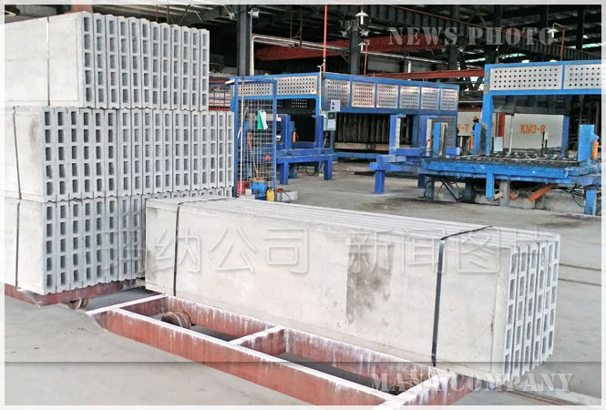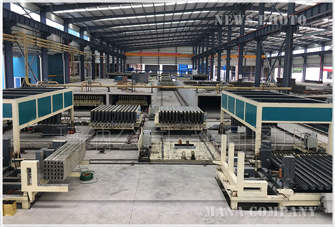 我公司M09陶粒隔墻板生產線工藝線緊湊合理,攪拌、澆注、干熱養護、脫模等工序均實現自動化。該線可生產陶粒墻板、水泥發泡墻板等各類帶孔的輕質墻板。整線采用成組立模成型工藝,具有自動化程度高、生產工藝穩定、長度可調、產量大等優勢。標準生產線年產能為50萬平方米,需要直接操作工人8-16人。