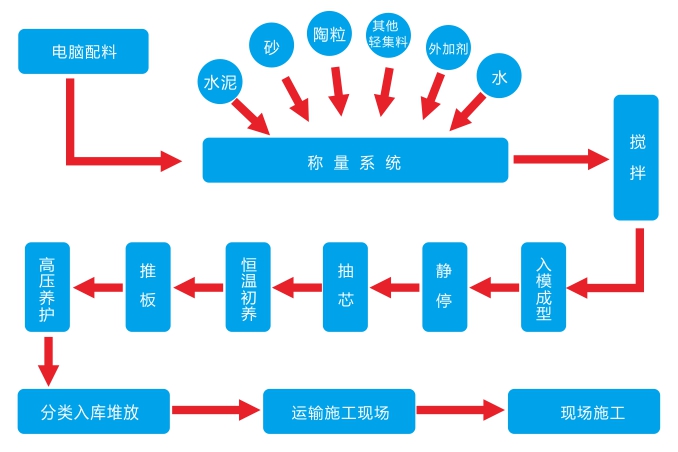 目前,國內外生產輕質墻板的生產線主要有立模工藝和平模工藝,這兩種生產線在實際的生產中存在以下問題 :1) 所生產的產品的抗壓強度低 ;2) 生產線的自動化程度不高,用的人工較多,工人的勞動強度大,生產效率低。