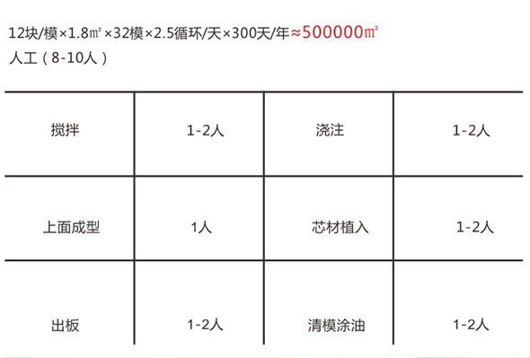 M08復(fù)合墻板生產(chǎn)線主要設(shè)備組成有:集約式低能耗養(yǎng)護(hù)室、第三代成組立模、立模回轉(zhuǎn)機(jī)、上抹面成型機(jī)、第三代液壓抽芯機(jī)、壓力注料系統(tǒng)、合板翻板機(jī)構(gòu)、推板機(jī)構(gòu),標(biāo)準(zhǔn)生產(chǎn)線產(chǎn)能年產(chǎn)達(dá)50萬㎡(2440mmX610mm)。