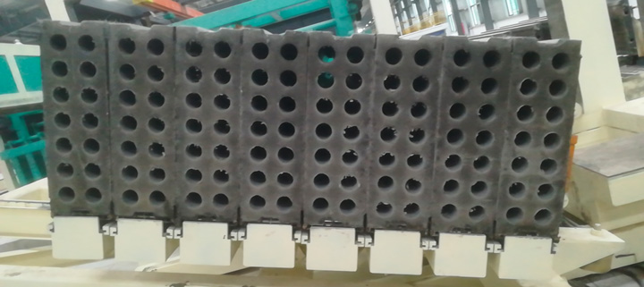 每組立模機根據生產規格不同,可生產8塊,12塊,16塊,24塊等塊數產品,采用立模澆筑法,澆筑料漿,模具成型。單臺成組立模機按照一天兩循環計算,年產25020平米。