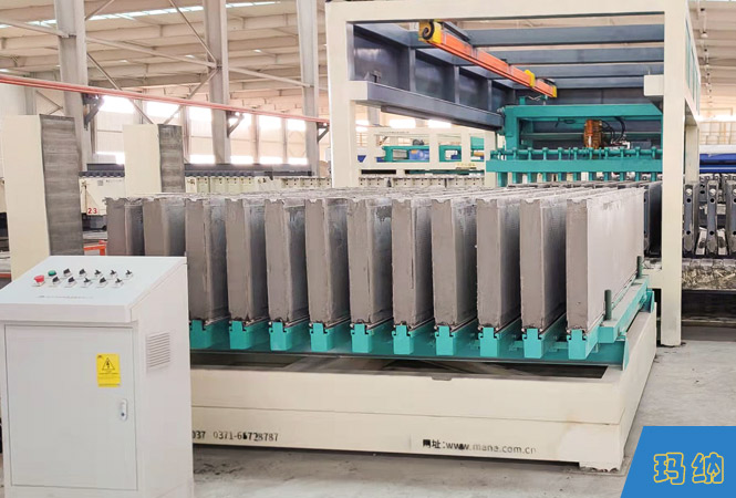 13. 立模行走至出模工位完成出板、翻板、輔助打包,后移至蒸壓釜蒸養