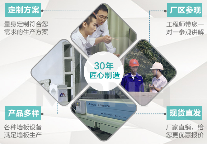 因有些石膏墻板的加工設備局限于模箱類間斷生產設備,產品單一,施工不能有序展開,缺少必要的配套構件、材料,誤時、誤工現象嚴重,建筑企業生產效率低,技術設備不適應現代化建筑工程的需要等,所以需要好的石膏隔墻板生產設備。