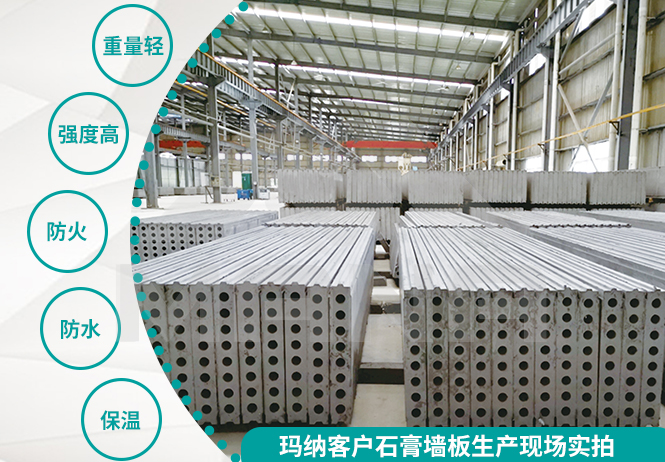 瑪納公司是石膏墻板生產設備廠家,其全自動石膏墻板設備成型裝置具備結構合理、操作簡單、便于移動、石膏墻板長度可調、勞動強度低、能耗低的優點,生產線工藝從攪拌到出板基本實現自動化,操作無需手工干預;成組立模機模腔經特殊工藝處理,免清模;高分子芯模設計,免清管,確保產線運行;相比業內同樣產能的生產線,操作用工最少,同等價位區間的產線,產能高;整條生產線占地空間小,操作方便,生產效率高,可實現24小時不間斷生產,單線年產能高。