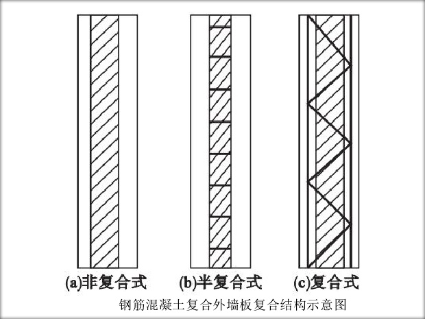 鋼筋混凝土復(fù)合外墻板主要是由外部的鋼筋混凝土結(jié)構(gòu)承重層和內(nèi)部的夾芯保溫層組合而成的墻板結(jié)構(gòu),典型的構(gòu)造有如下圖三種復(fù)合形式。鋼筋混凝土復(fù)合外墻板根據(jù)夾芯保溫層所用材料的不同,有承重混凝土巖棉復(fù)合外墻板、混凝土膨脹珍珠巖復(fù)合外墻板和三種類(lèi)型的復(fù)合外墻板。