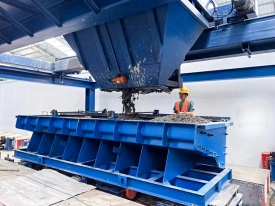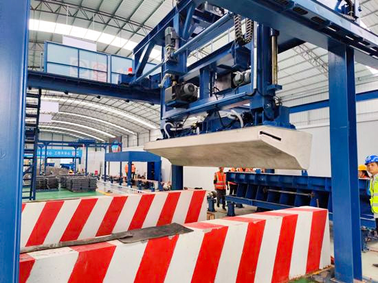 該生產線包含六大功能區:包含鋼筋籠制作區、混凝土澆筑區、蒸汽養生區、拆模清理區等,各區域由軌道串聯成一個環形整體,區域間配備了機械臂、擺渡車和移動小車,實現工序無縫銜接。