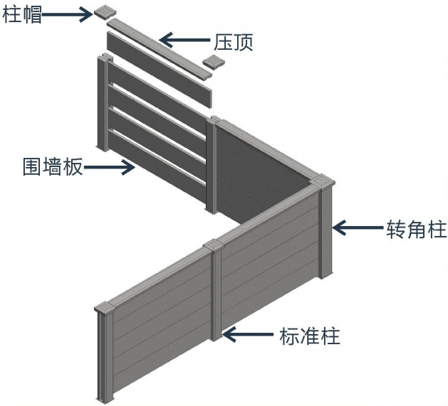 裝配式圍墻一般由柱、墻板、壓頂和柱帽構件組成,所有構件采用工廠預制。