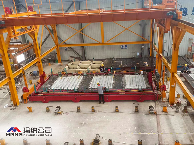 (1)平面布局合理。魚雷罐速度快,攪拌站位置合理,實現鋼筋加工、模具安置、布料澆筑振搗、養護區域合理安排。(2)合理利用空間布局:二層平臺或立體流水線工藝。(3)鋼筋加工和澆筑成型整合一體化。