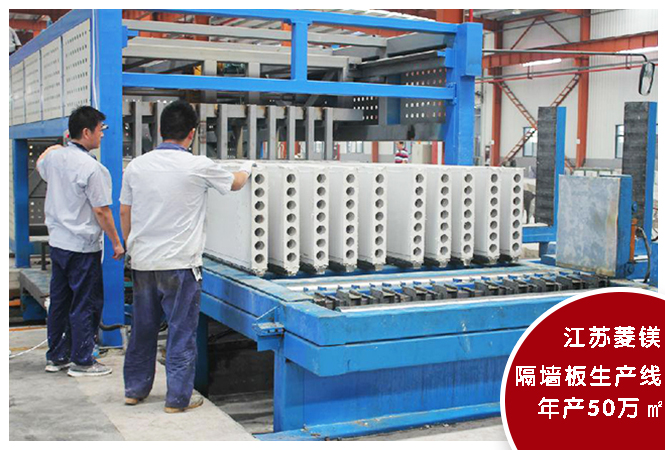 為解決這一問題滿足市場需求,瑪納公司經過技術創新,采用成組立模成型技術(系瑪納公司原始技術創新成果),研制出了M09輕質墻板生產線,該生產線主要生產新型輕質條板,實現了菱鎂隔墻板的自動化生產。