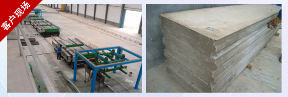 整個過程:配料→攪拌→置板→壓力輸送→澆注入模→養護→開模→出板機出板→循環。