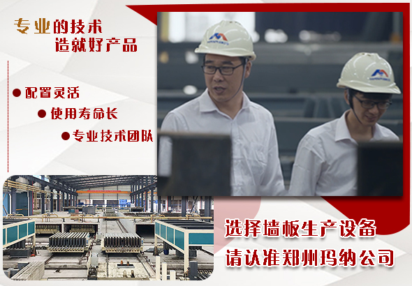 瑪納公司是專業(yè)的墻板設備廠家,歷經(jīng)30余年的發(fā)展,擁有多年的墻板設備研發(fā)生產(chǎn)經(jīng)驗,市場占有率非常高,客戶也是遍布全國各個地區(qū),很多客戶墻板生產(chǎn)線已成為當?shù)匦袠I(yè)標桿,接待眾多企業(yè)的參觀考察,瑪納公司擁有自主設計研發(fā)團隊,公司有多位高級工程師,可根據(jù)客戶要求在原有設備基礎上滿足個性需求,公司實施廠家直銷模式,所有墻板設備均直接針對終端客戶,省去中間環(huán)節(jié),價格更合理化。
