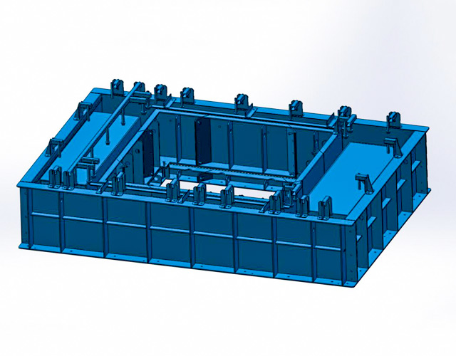 5. 承插口密封條槽口、各處定位機構、側模滑動輪等機加工零部件,使用數控車、銑,龍門刨床、數顯鏜床及CNC數控加工中心等實現。